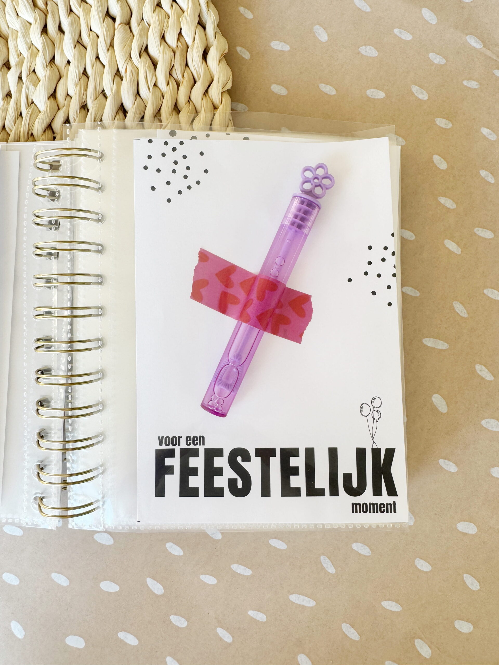 Bundel alles in een A6 formaat fotoalbum (te koop bij Action/Hema) en voeg cadeaubonnen of kleine presentjes toe