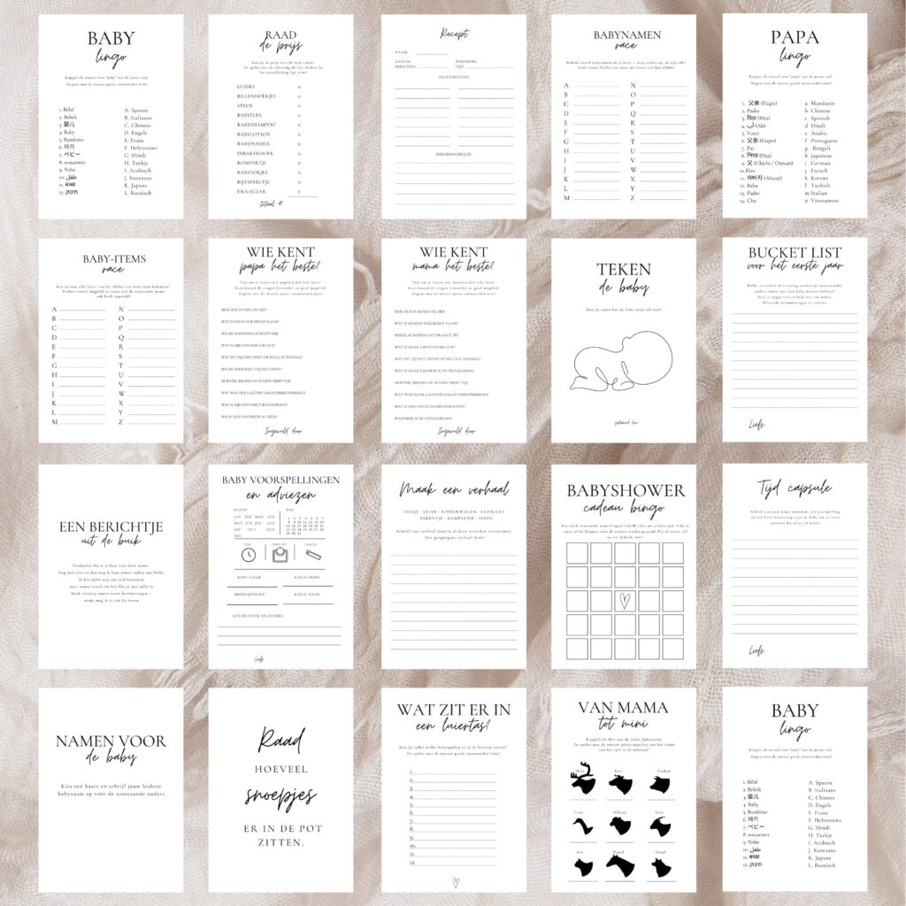 In deze leuke bewaarbundel bewaar je alle (ingevulde) invulkaarten voor de babyshower of gender reveal. Super handig en leuk om na afloop cadeau te geven aan de aanstaande ouder(s).